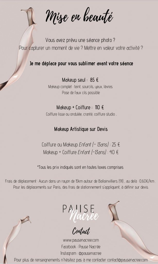 • Le lieu du shooting en studio dépendra de la date, il sera en Essonne dans le 91, l’adresse vous sera communiquée après la réservation.